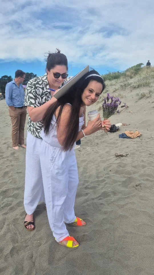 I’m married to Dan, māmā to our three tamariki – Māia, Tīpene and Manawa – and happiest with salty skin, a yoga mat, good book and a hot cuppa in hand. That same grounded, heart-led energy is what I bring into every ceremony I hold. Whether it’s barefoot in the sand, with your whānau in the backyard, or the full shebang at a lush venue... I’ve got you. You just show up and feel the feels – I’ll take care of the rest.